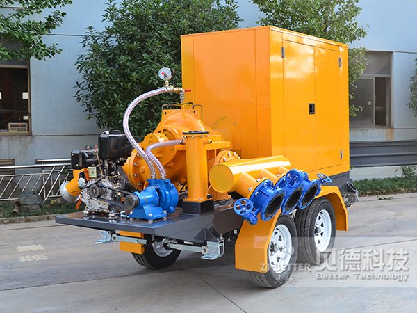 湖北荊州應急局驗收貝德科技半架式四輪移動排澇泵車